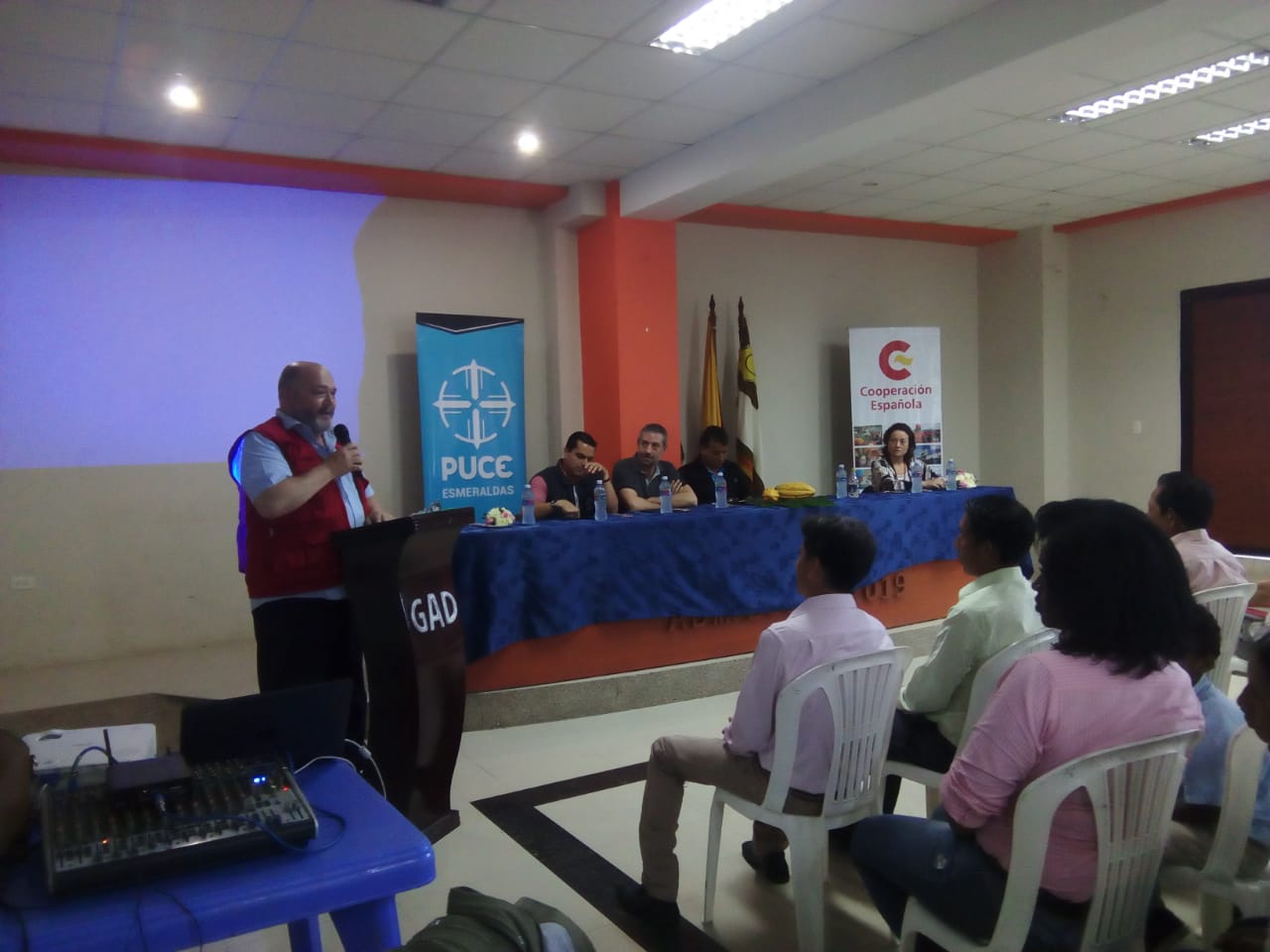 El proyecto “Mejorar los medios de vida sostenibles de la población rural del cantón de Quinindé en la provincia de Esmeraldas, Ecuador” se inició en septiembre del 2017 en la parroquia la Unión en el cantón Quinindé, la primera actividad que se desarrollo fue un proceso de formación integral en desarrollo empresarial y con enfoque de género dirigido a los pequeños productores organizados de las comunidades de San Vicente, El paisaje y Nuevo Azuay, se dictaron 11 módulos durante 5 meses obteniendo un nivel de participación de 66 beneficiarios. La formación la realizaron 49 productores con un nivel de participación del 49% de hombres y 51% de mujeres; y un promedio de general de 87,61/100 puntos. Tras recibir los diferentes conocimientos, los beneficiarios vieron la posibilidad de dar más rendimiento a la implementación de la fábrica artesanal del chocolate prevista en el proyecto, por un lado, sacar la pasta de cacao y por otro lograr producir barras y bombones, de esta manera seria más rentable el proyecto. Tras ver la posibilidad se realizó un ajuste presupuestario y desde el socio local la Pontificia Universidad Católica del Ecuador (PUCESE) y las tres asociaciones aportaron fondos para hacer posible el cambio.