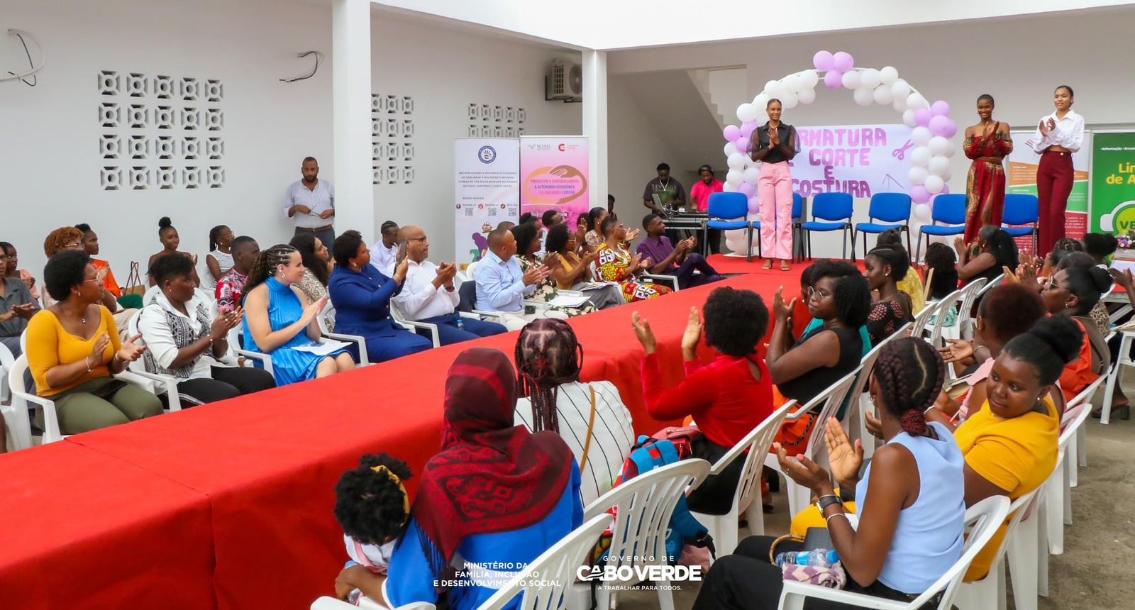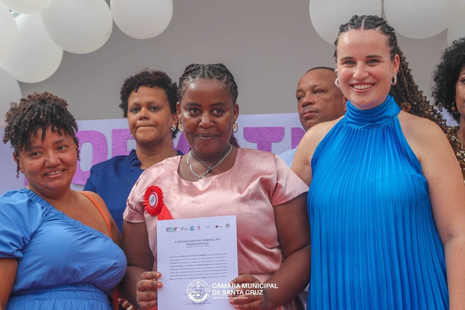 Esta ceremonia la presidió el Ministro de Estado, Familia, Inclusión y Desarrollo Social, el Sr. Fernando Elísio Freire, acompañado del Presidente de la Cámara Municipal de Santa Cruz, el Sr. Carlos Silva; la Presidenta de ICIEG, la Sra. Marisa Carvalho; la coordinadora de FRS en Cabo Verde, la Sra. Victoria Seoane; la Presidenta de OMCV, la Sra. Eloisa Goncçalves y la Directora de Formación del IEFP.