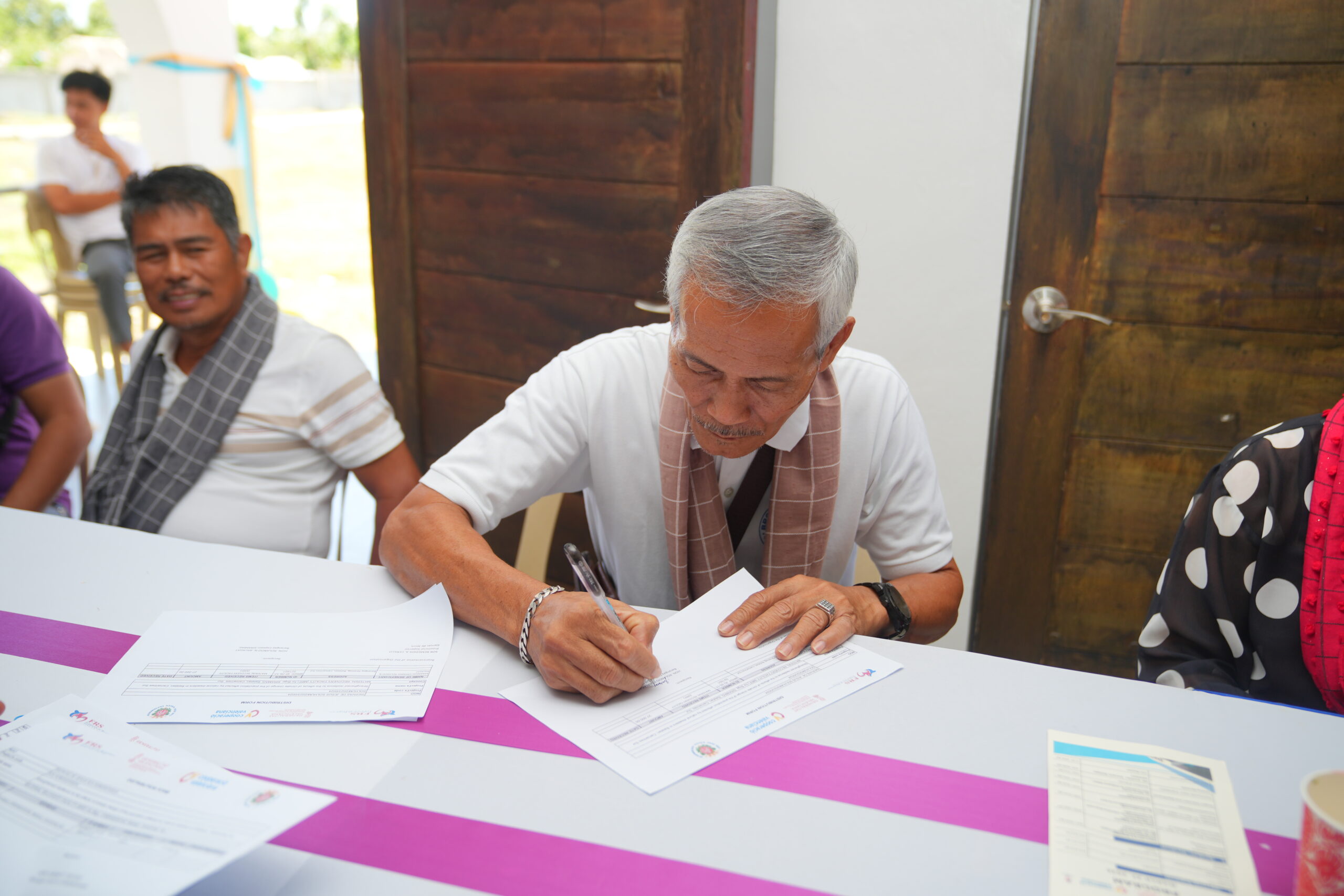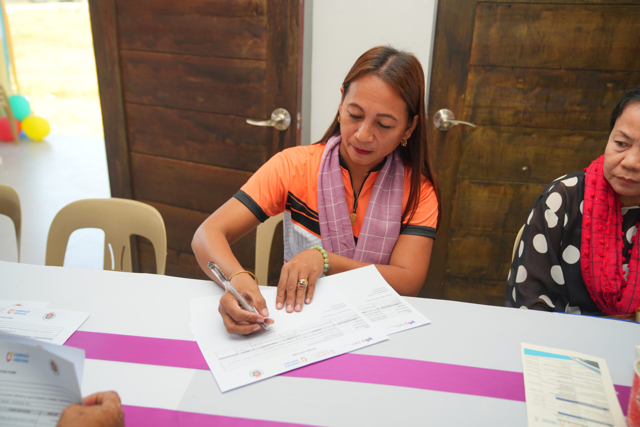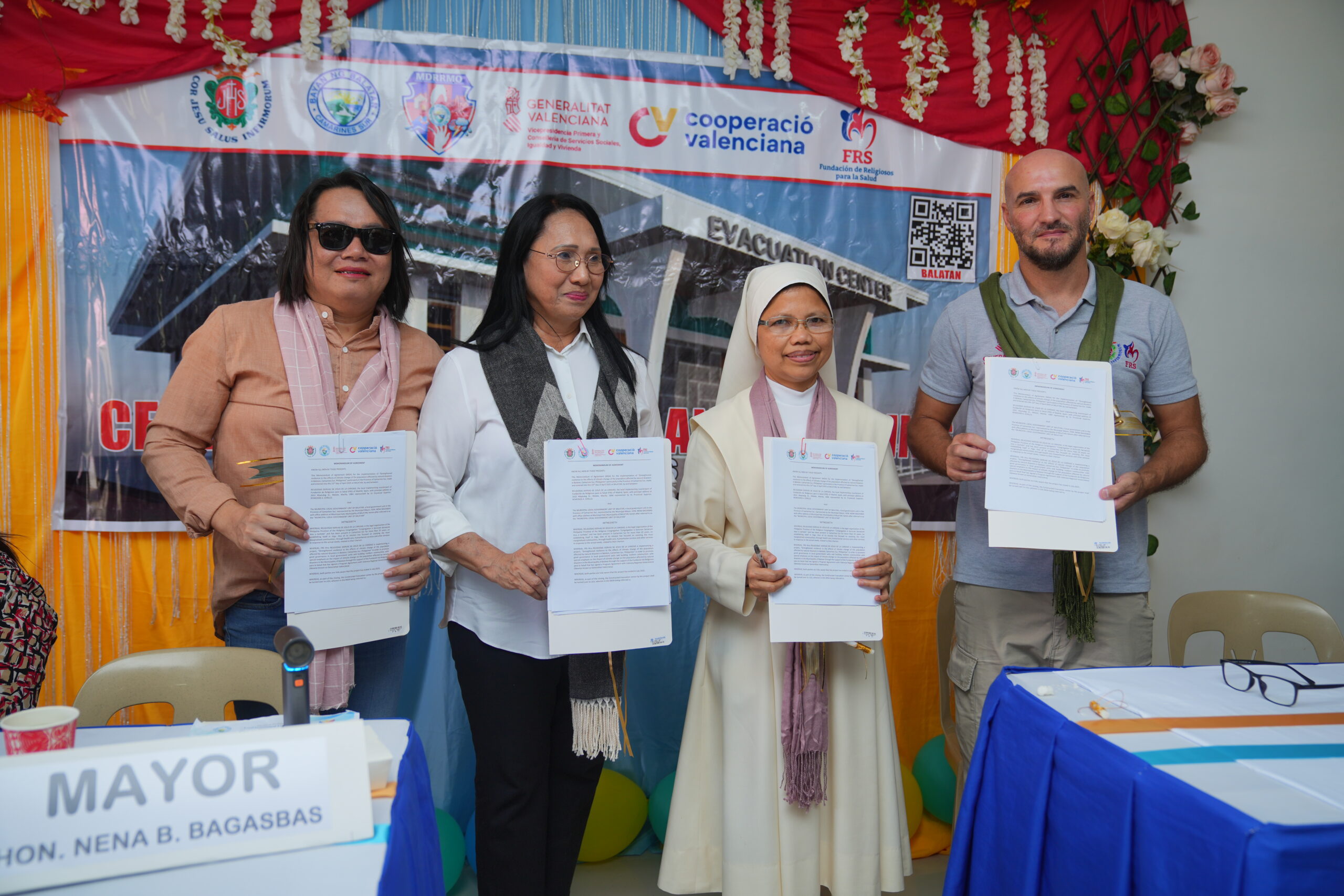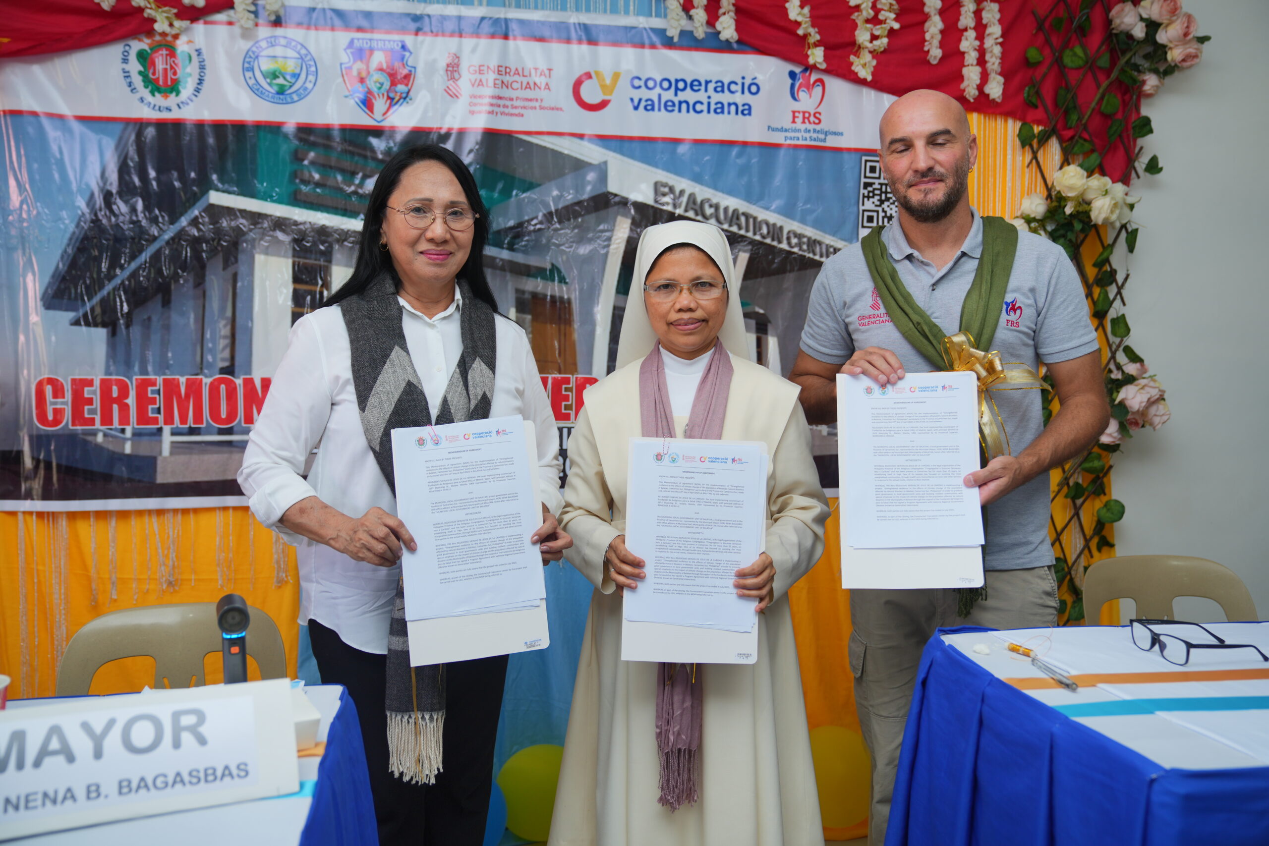 Se firmaron los acuerdos de transferencia entre FRS-Siervas de Jesús y la MLGU, tanto del centro de evacuación como del equipo entregados, ventiladores, mesas y camas plegables, sillas, utensilios de cocina como ollas, cocina de gas, etc.…