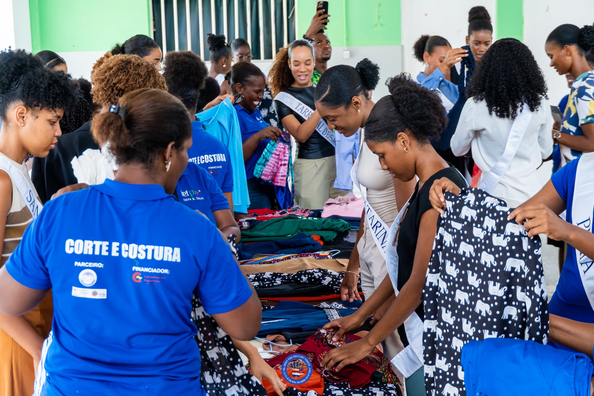 A continuación, acompañados por la presidenta de ICIEG, la Sra. Marisa Carvalho, y su equipo, realizamos un taller de fotografía y un desfile de las piezas de ropa realizadas por las mujeres que reciben formación en corte y costura a través del proyecto. Fue un momento increíble en el que las estudiantes mostraron sus piezas a las aspirantes a Miss y estas se probaron las ropas y desfilaron las piezas en compañía de las diseñadoras.