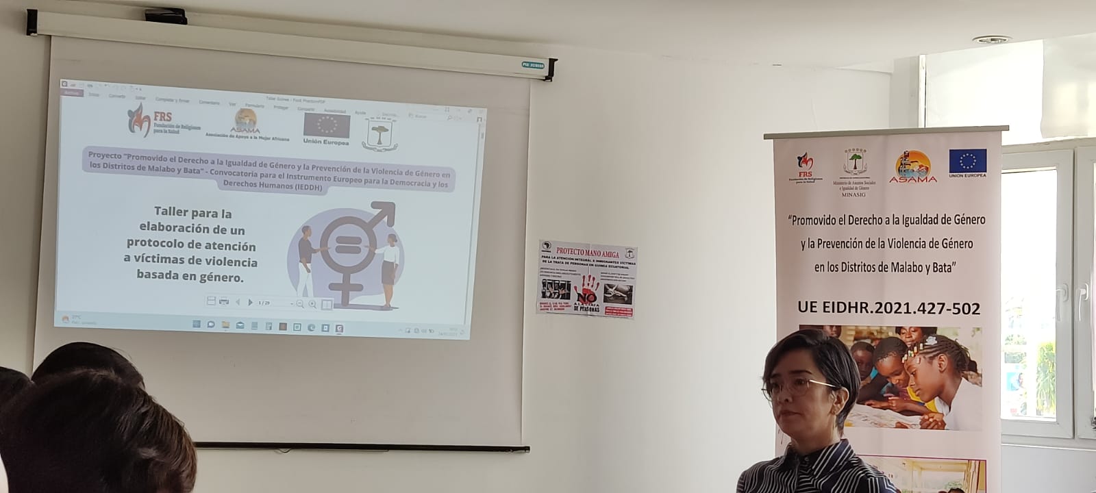 La actividad desarrollada, contó en la apertura de la misma con la presencia de la Ministra de Asuntos Sociales e Igualad de Género, La Excelentísima Señora Doña María Consuelo Nguema Oyana, y se llevó a cabo en el marco del Proyecto “Promovido el Derecho a la Igualdad de Género y la Prevención de la Violencia de Género en los Distritos de Malabo y Bata” – Convocatoria para el Instrumento Europeo para la Democracia y los Derechos Humanos (IEDDH) financiado por la Unión Europea.