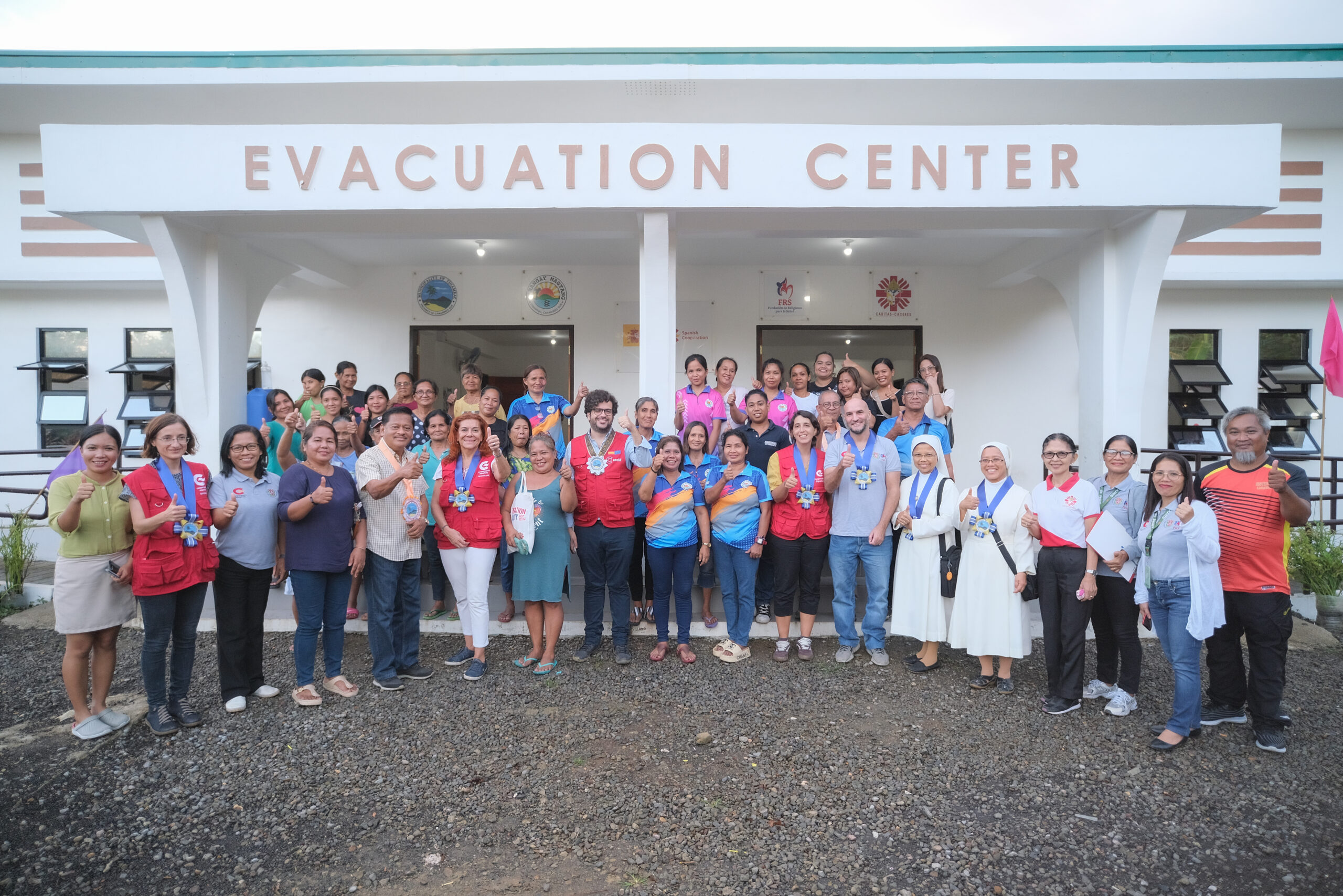 El día empezó con un viaje por carretera desde Legazpi hasta el Barangay de Malaconini, en la costa más oriental de Siruma, donde FRS con el apoyo de a AECID, construyó uno de los 2 centros de evacuación en colaboración con la contraparte local Caritas Cáceres y del gobierno Municipal de Siruma y los gobiernos locales de los Barangays.